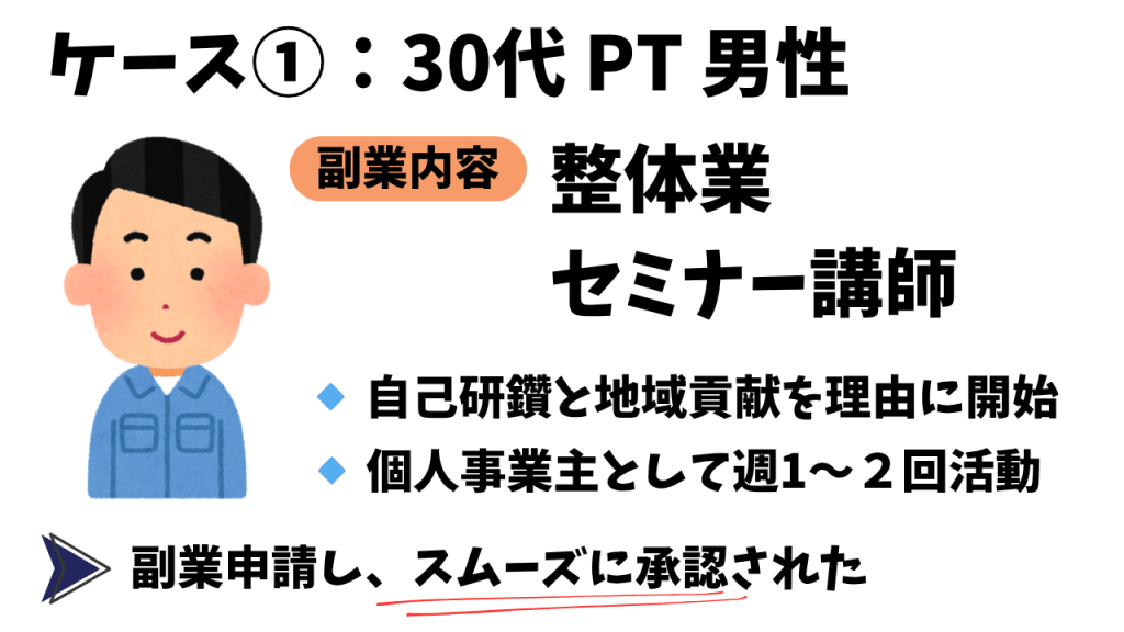 - 実際に副業申請した2人の療法士の事例(内容・労働時間など)