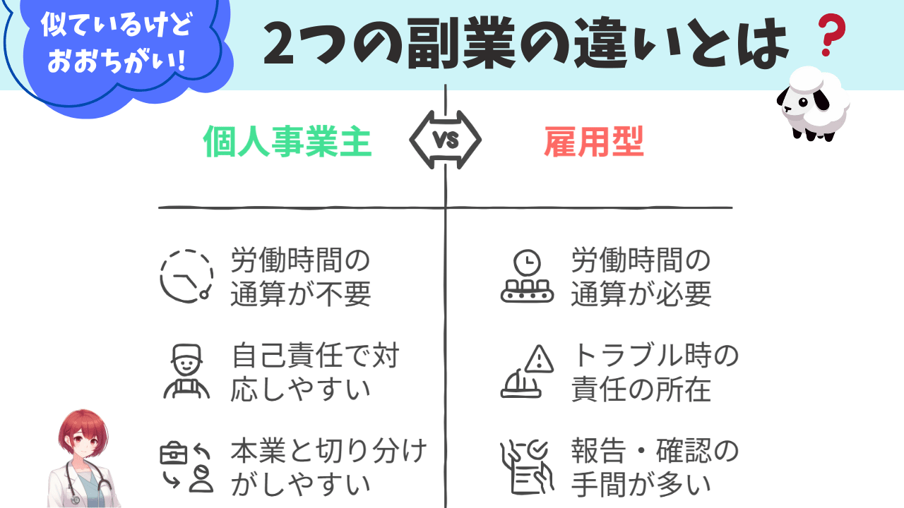「自営業」と「Wワーク」の中間的な立ち位置で、職場にも相談しやすいスタイルです。