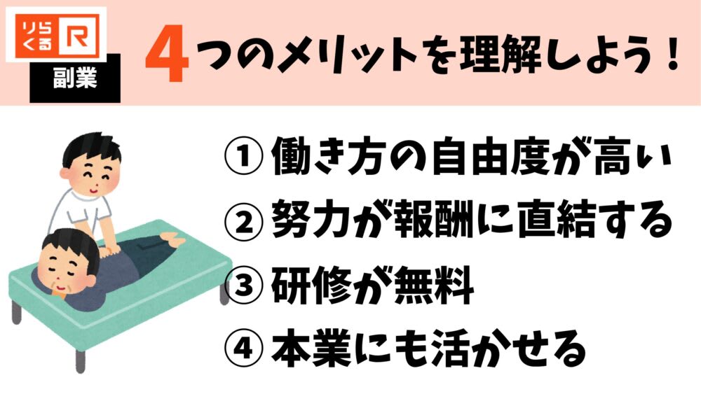 次はりらくるで副業をする4つのメリットについて見ていきましょう。