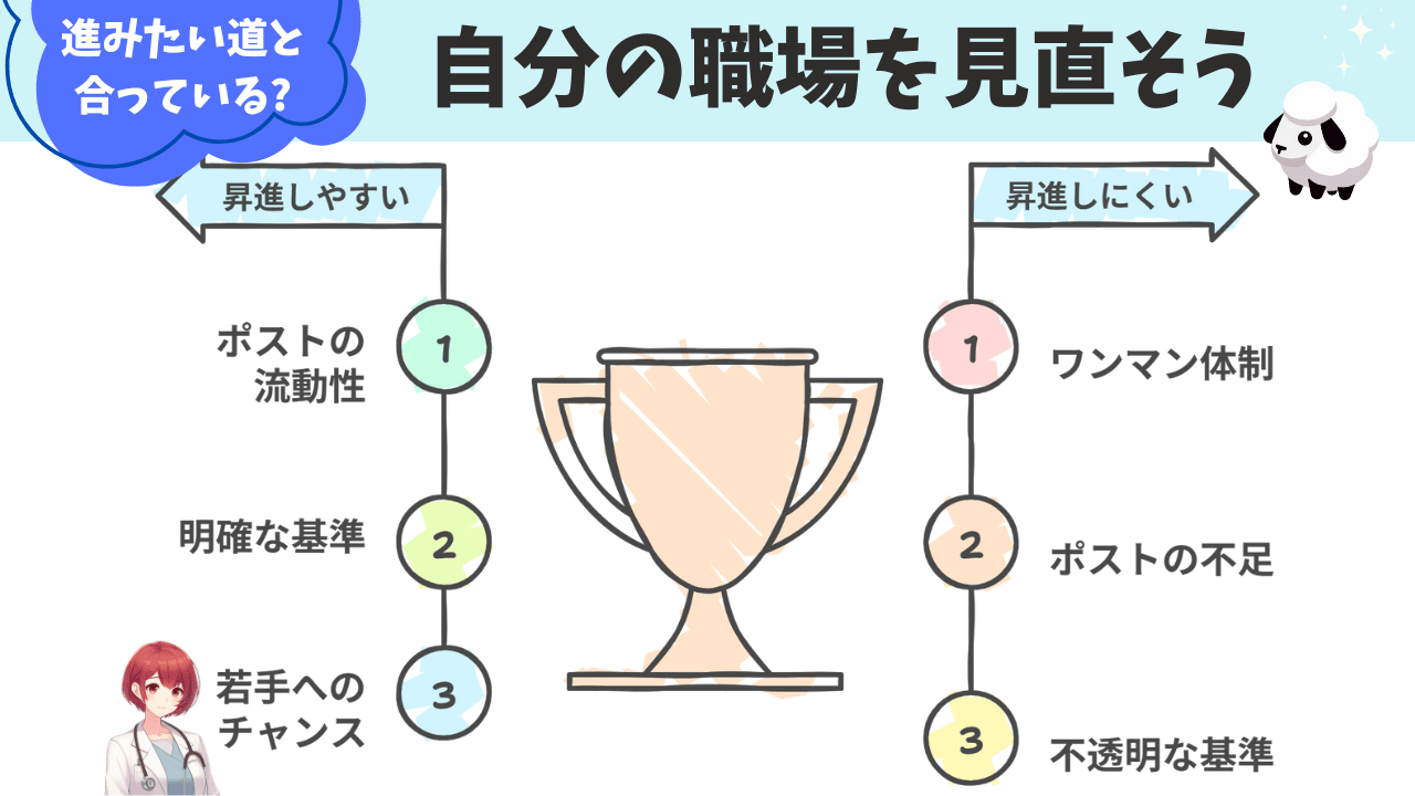 昇進を目指すにせよ、望まないにせよ、大切なのは、“今の職場が自分が進みたい道と合っているかどうか”を見極めることです。