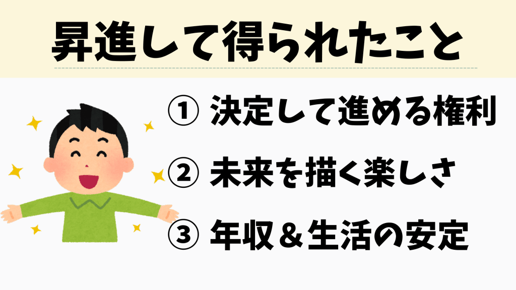 昇進したことで得られたものは、想像以上に大きなものでした。